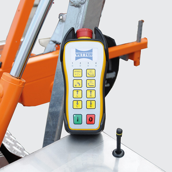 Commander à distance des fonctions suivantes du système hydraulique :Levage et abaissement du touretPivotement du brasLa vitesse d'entraînement du touret